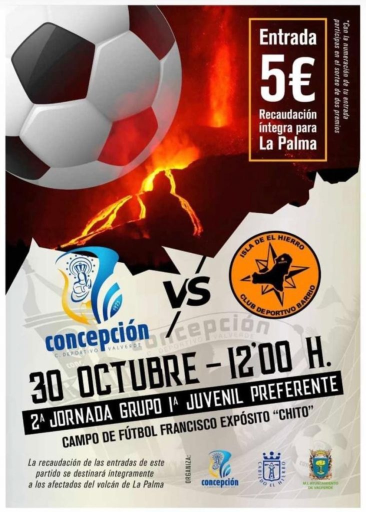 C.D Concepción y Club Deportivo Barrio, disputarán este sábado 30 de octubre a las 12h, en Valverde, un partido de la 2ª jornada del grupo 1º de la liga juvenil preferente. La entrada, con un coste de 5€, ira destinada íntegramente para los damnificados del volcán de La Palma. Además durante el descanso se sortearán […]