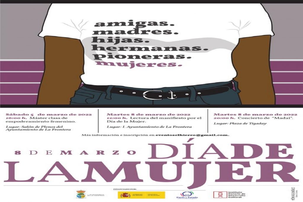 Con distintas actividades institucionales, de concienciación y musicales El Ayuntamiento de La Frontera conmemorará el Día Internacional de la Mujer con distintas actividades propuestas los días 5 y 8 de marzo con el lema “Amigas. Madres. Hijas. Hermanas. Pioneras. Mujeres”, suscritas con una subvención por el Pacto de Estado contra la Violencia de Género. Un […]