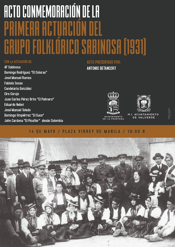Los Ayuntamiento de Valverde y de Frontera te invitan a celebrar la conmemoración de la primera actuación del grupo folklórico Sabinosa, que tuvo lugar en el año 1931. Este evento tendrá lugar el domingo 14 de mayo en la plaza Virrey de Manila a las 19 :00h, como parte de los actos de San Isidro. […]