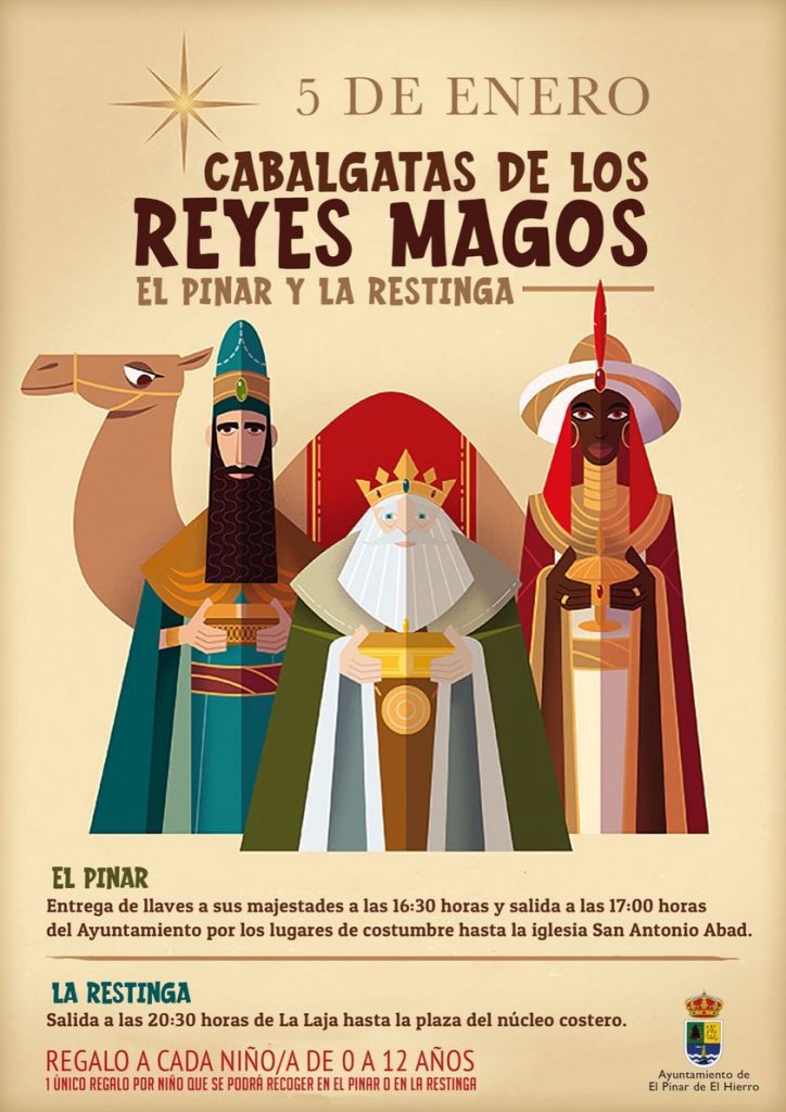 El municipio de El Pinar recibe este viernes a los Reyes Magos de Oriente con las cabalgatas anunciadoras que discurren por distintas vías de los núcleos de El Pinar y La Restinga. Sus Majestades de Oriente le tienen guardado un regalo educativo a cada niño/a de 0 hasta 12 años, que lo podrán recoger o […]