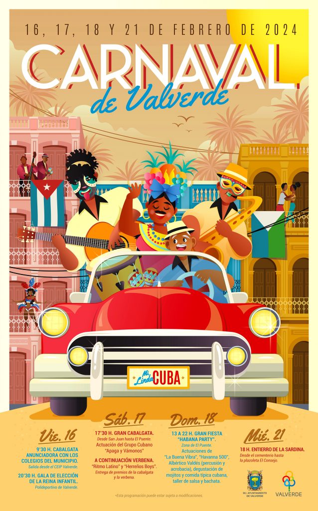Programación del carnaval 2024 ·Mi linda Cuba» en el Ayuntamiento de Valverde