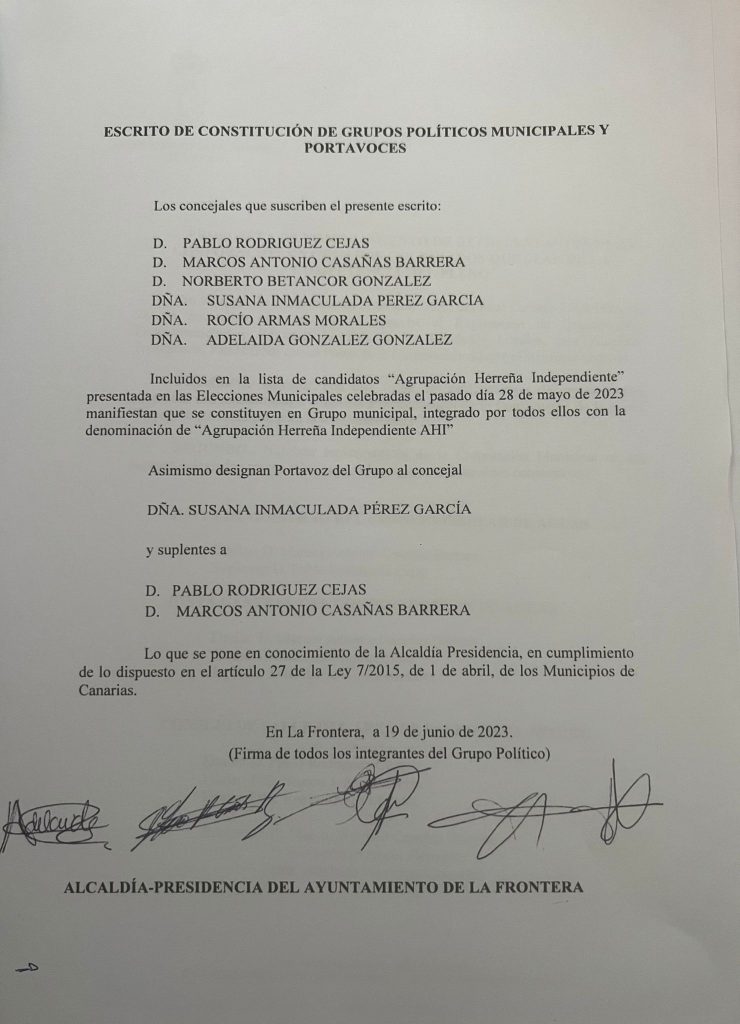 Se confirma que Unión Frontera (UF) no tiene representación en el Ayuntamiento de La Frontera