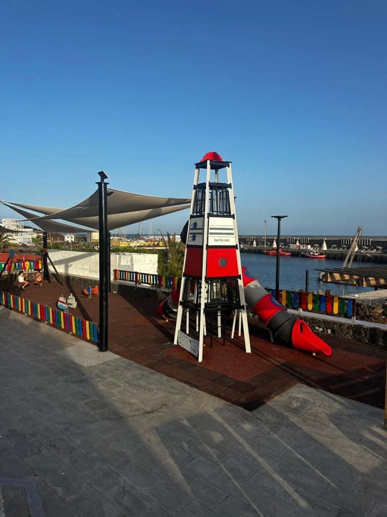 El Ayuntamiento de El Pinar instala un nuevo juego infantil con forma de faro en La Restinga