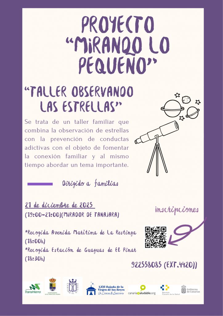 La cita se encuentra enmarcada en el IV Plan Insular de Adicciones de El Hierro (2023-2027) del Cabildo Insular de El Hierro para la prevención de adicciones El proyecto ‘Mirando lo pequeño’ ofrece el ‘Taller observando las estrellas’, que se llevará a cabo el próximo domingo 21 de diciembre, en el Mirador de Tanajara, […]
