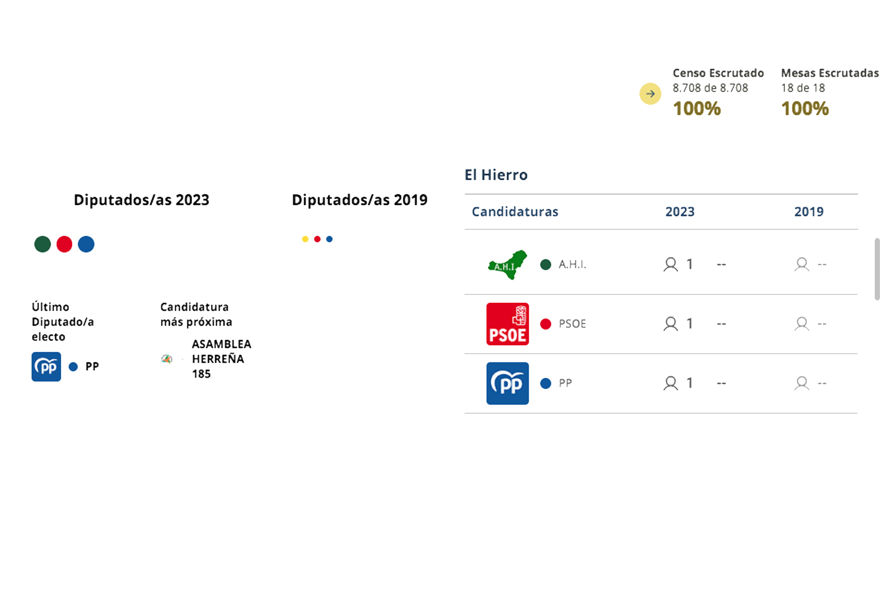 Javier Armas (AHI) gana las elecciones al Cabildo de El Hierro y logra 4 consejeros, PSOE logra 3, AH 3 consejeros y Reunir 1
