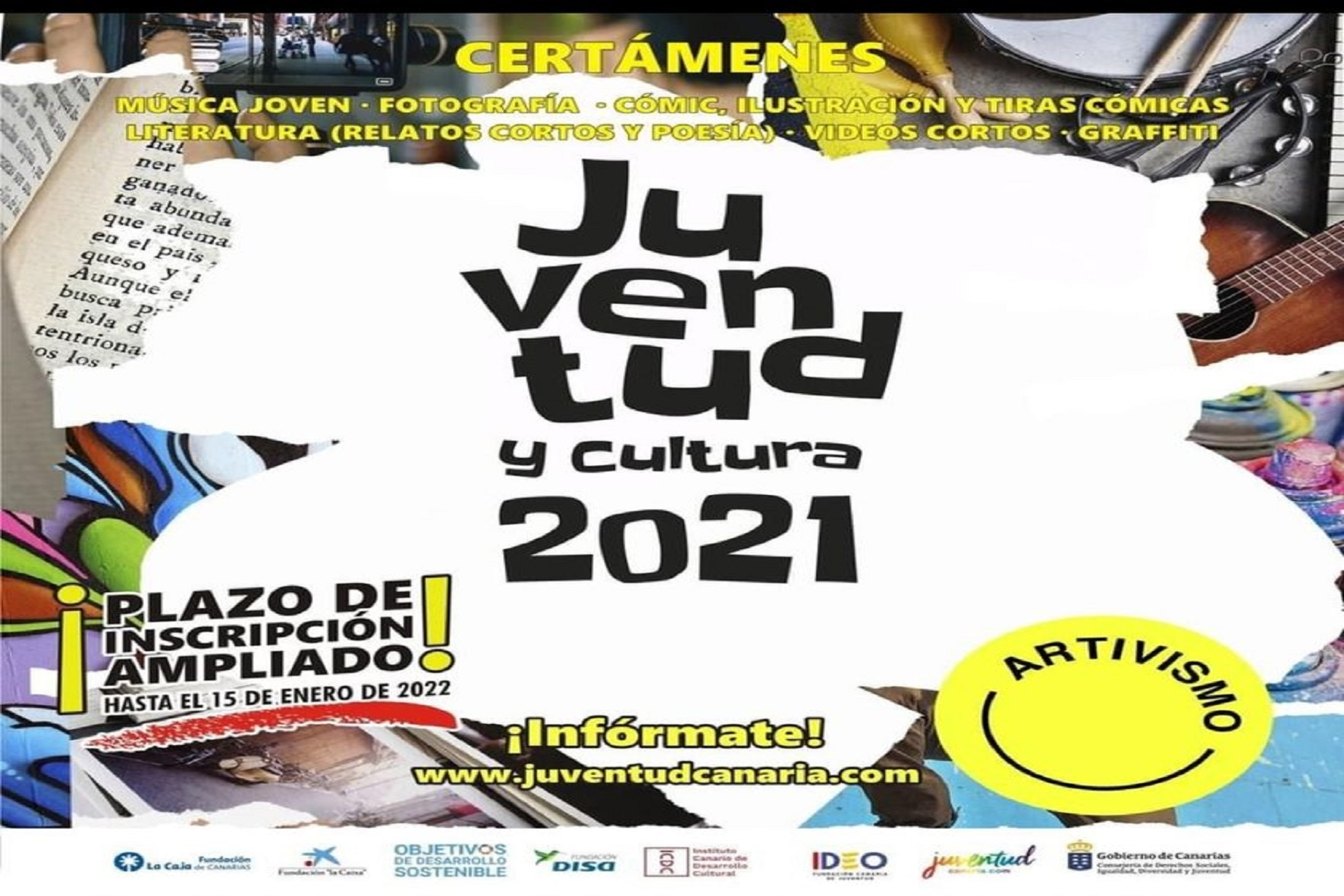 JuventudCanaria ha ampliado hasta el 15 de enero el plazo de inscripción para participar en el programa ‘Juventud y Cultura’, cuyo objetivo es promocionar el talento y la capacidad de creación de la juventud de nuestras islas. Si tienes entre 12 y 30 años y desarrollas tu actividad creativa en el ámbito de la música, fotografía, cómic, ilustración, literatura, vídeos cortos y graffiti esta es tu oportunidad.