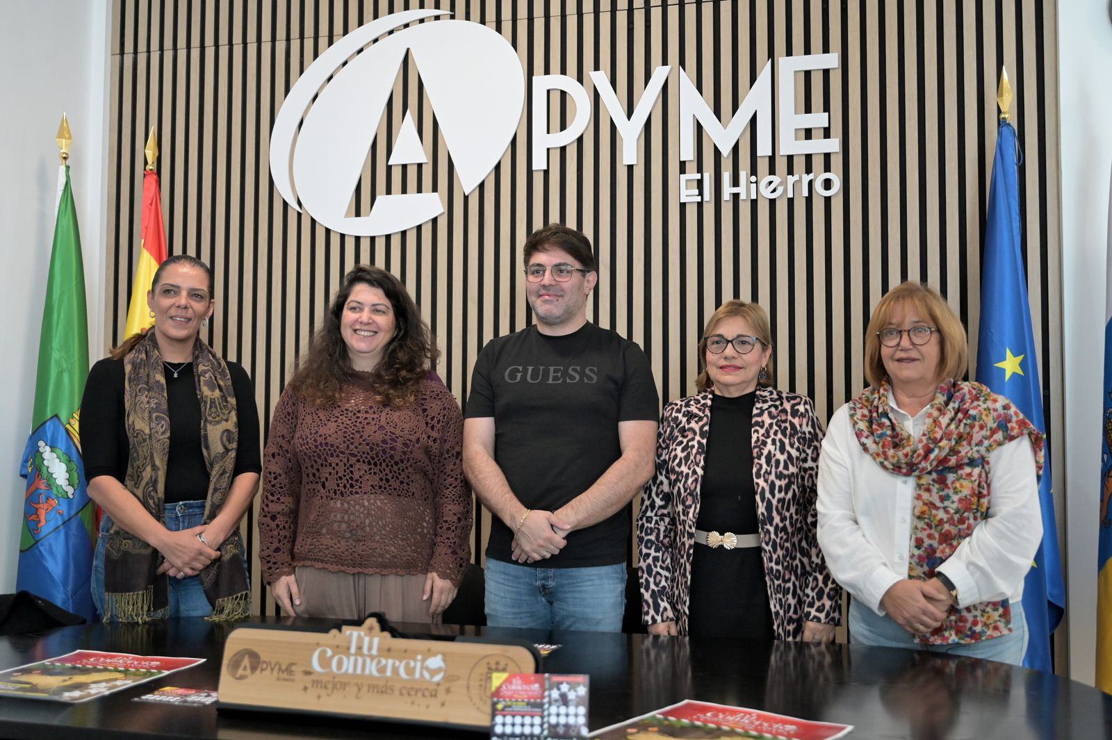 La iniciativa ha sido presentada hoy martes, en la sede de APYME El Hierro en La Frontera, por el presidente de APYME El Hierro, Feliciano López, junto a la consejera de Empleo y Desarrollo Económico del Cabildo de El Hierro, Anabel López, y las concejales de comercio de los ayuntamientos de Valverde, Yaiza Castañeda; La Frontera, Susana Pérez, y El Pinar de El Hierro, Magaly González.