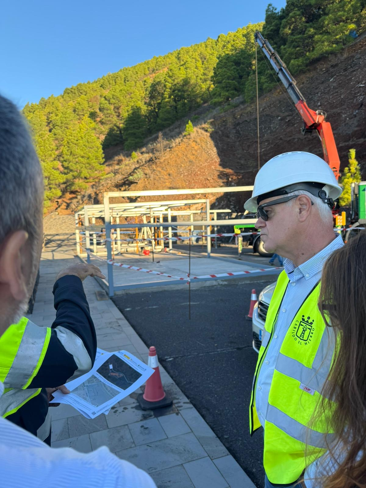 El presidente del Cabildo de El Hierro, Alpidio Armas, ha comprobado el estado de las obras de construcción de dos módulos de observación para poner en marcha un parque astronómico en el Centro de Interpretación del Parque Cultural de El Julan.