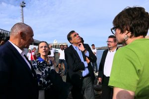 • El vicepresidente de la Comisión Europea, Margaritis Schinas, acompañado por Candelaria Delgado y Amado