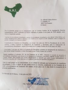 La AHI comunicó el martes pasado a los consejeros del partido nuevo fundado por David