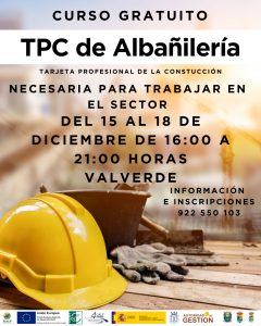 El curso tendrá lugar del 15 al 18 de diciembre, de 16:00 a 21:00 horas