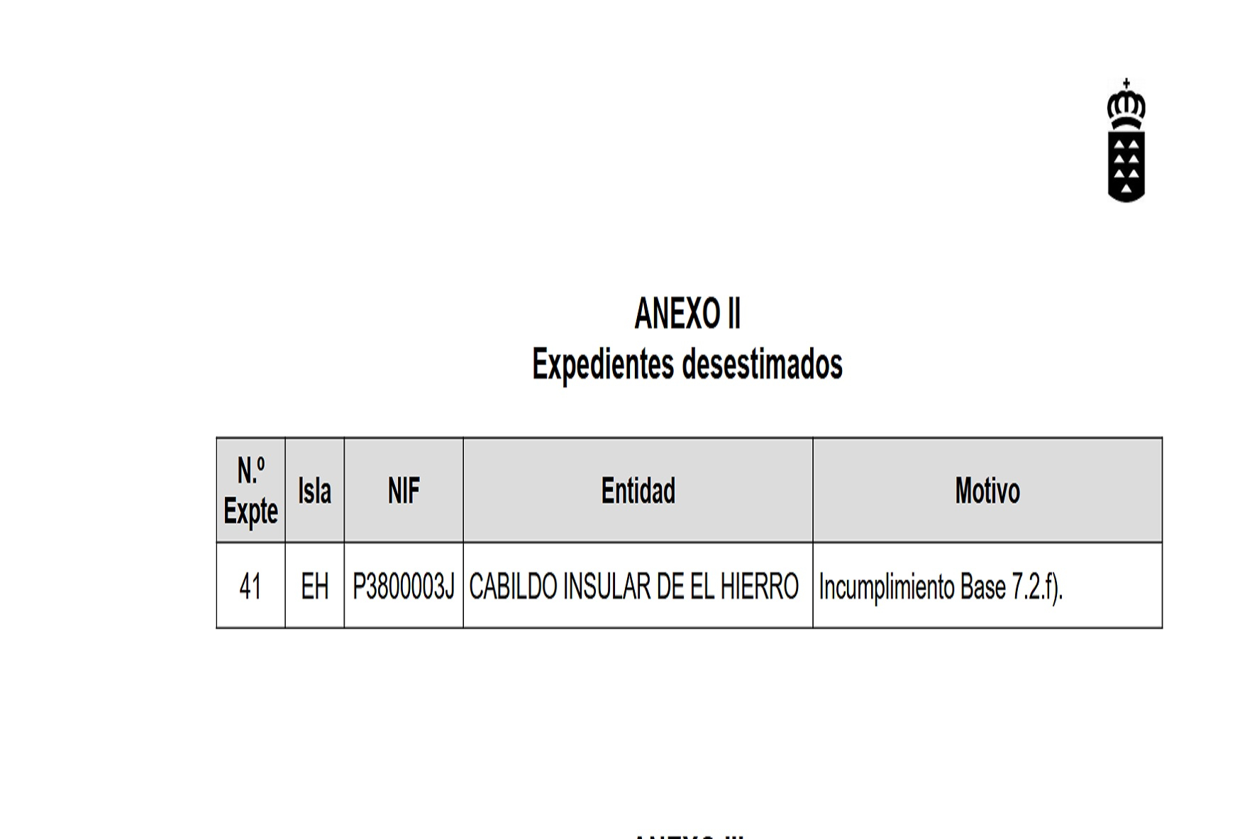 Como podrán ver en el documento, EL CABILDO DE EL HIERRO es el único que se queda fuera de dicha subvención, como se le conoce a este consejero, “el hombre del selfie” pero no da palo al agua.