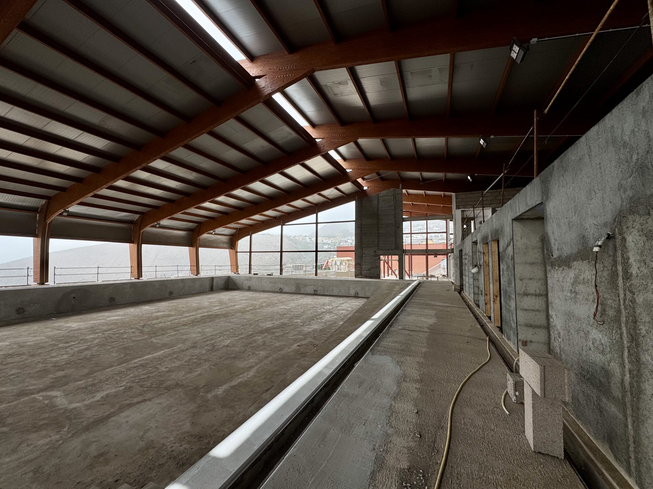 El alcalde de Valverde, Carlos Brito, y el Teniente de alcalde, Juan Pedro Sánchez, visitaron la obra de la futura piscina municipal cubierta con el objetivo de evaluar la evolución de los trabajos y trasladar el compromiso del Ayuntamiento con la continuidad del proyecto.
