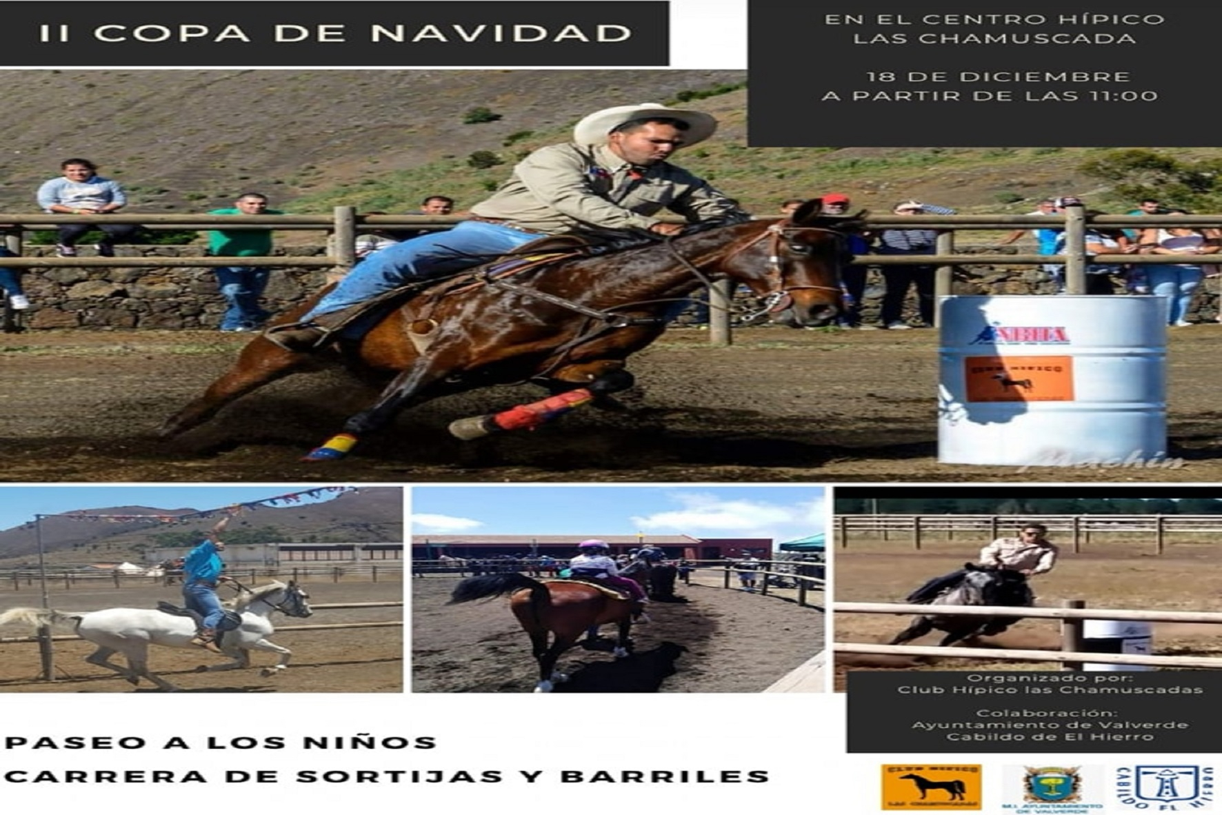 El Ayuntamiento de Valverde anuncia la celebración de La Segunda Edición de La Copa de Navidad de Hípica, que se celebrará este sábado 18 de diciembre, en las instalaciones ecuestres de San Andrés, a partir de las 11 de la mañana.