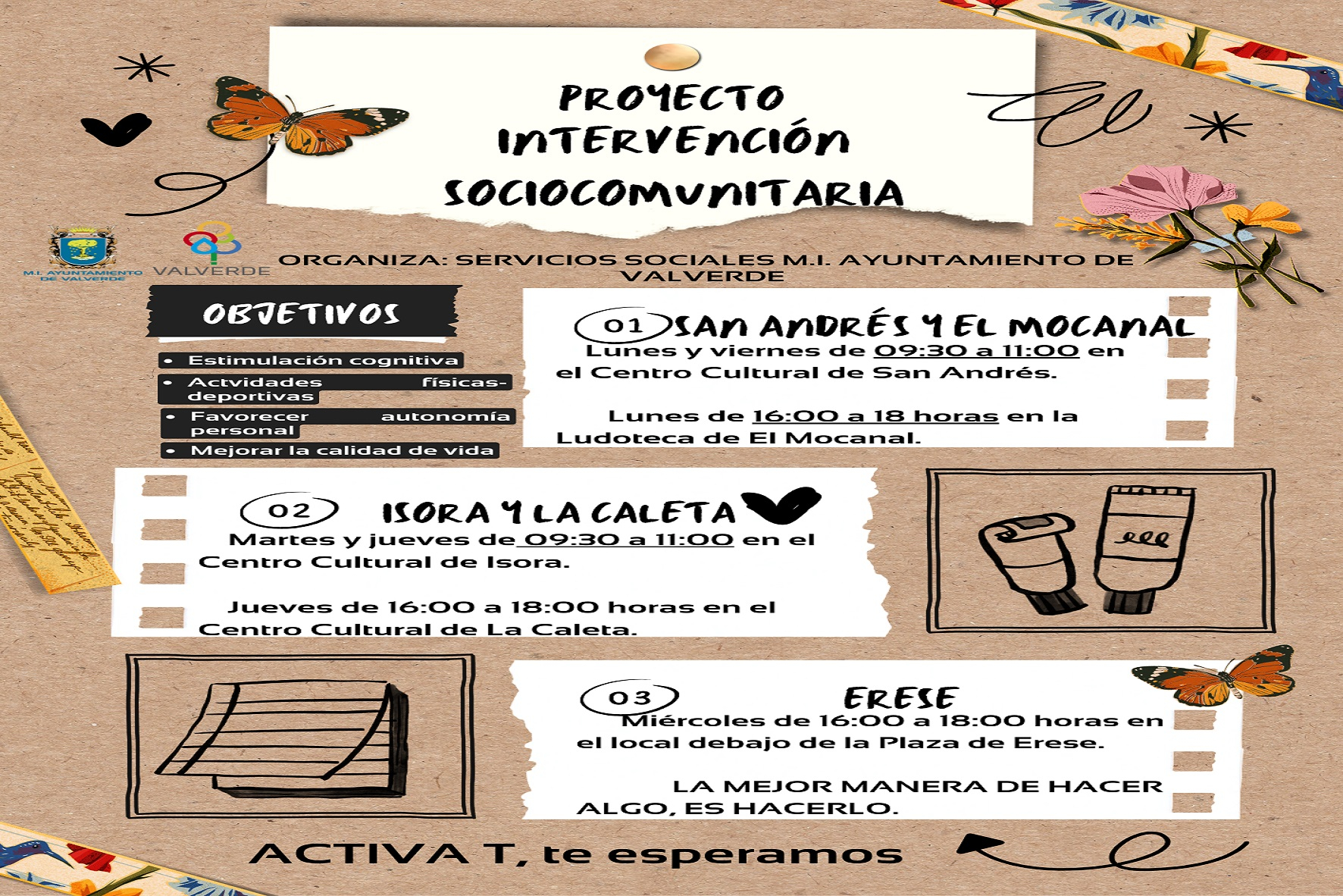 El Ayuntamiento de Valverde, a través de la Concejalía de Servicios Sociales, ha lanzado un proyecto de intervención socio-comunitaria con actividades físicas y cognitivas para personas mayores. El objetivo es promover el envejecimiento activo, mantener la autonomía y prevenir el deterioro asociado al envejecimiento.