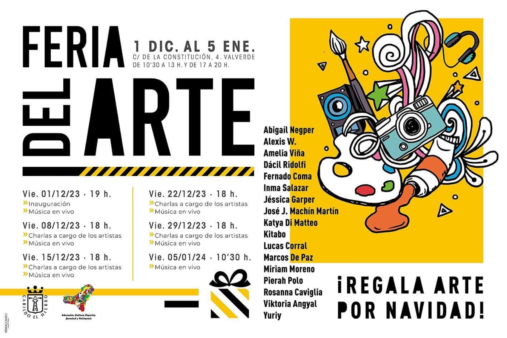 La Consejería de Cultura del Cabildo de El Hierro organiza la FERIA DEL ARTE 2023-24 que reunirá a 17 artistas herreños en un espacio multidisciplinar enriquecido con piezas únicas que estarán expuestas, y a la venta, en Valverde entre el próximo 1 de diciembre y el 5 de enero.