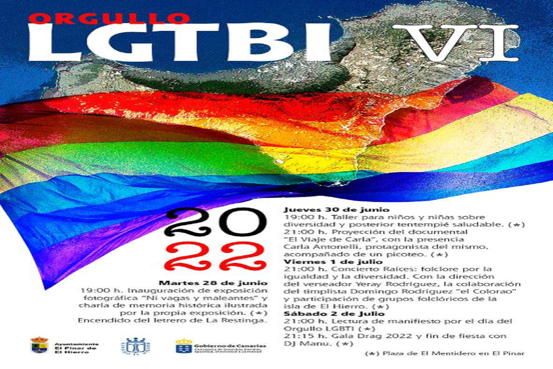 El Ayuntamiento de El Pinar celebrará la semana del Orgullo LGTBI desde el próximo martes 28 de junio hasta el sábado 2 de julio, para promover la igualdad de derechos de estos colectivos. En el programa también colaboran el Cabildo de El Hierro y el Gobierno de Canarias.