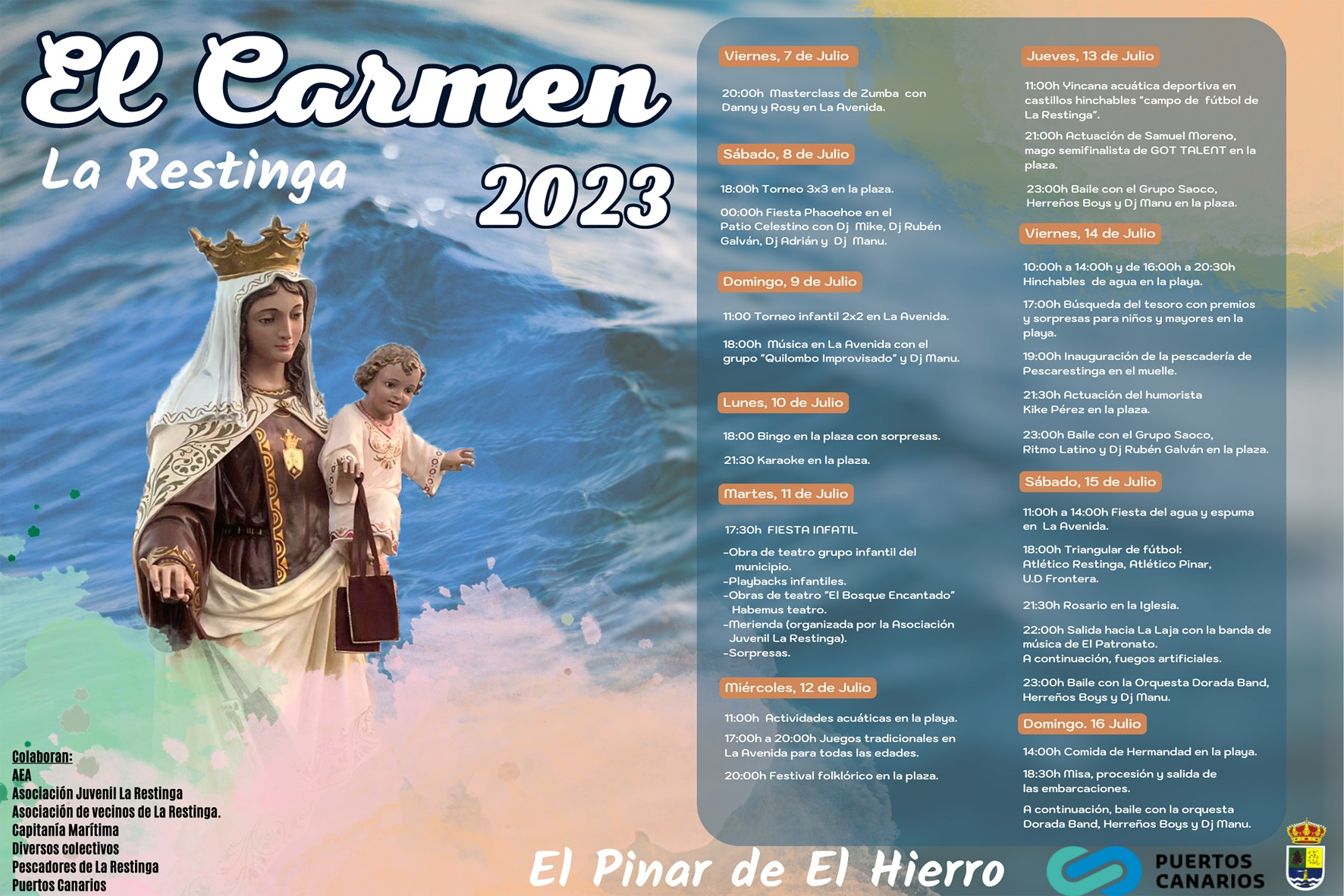 El Ayuntamiento de El Pinar de El Hierro organiza una nueva edición de las Fiestas del Carmen 2023, que se celebrarán del 7 al 16 de julio. La programación recoge actividades que fomentan la participación de todos los públicos.