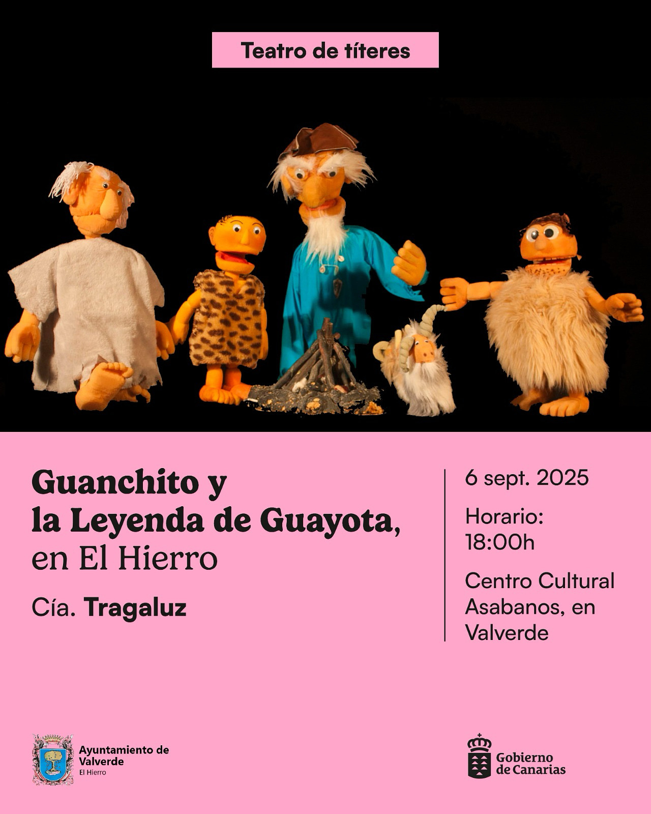 El próximo sábado 6 de septiembre a las 18:00h, el Centro Cultural Asabanos acogerá la representación de “Guanchito y la Leyenda de Guayota”, un espectáculo de títeres de la compañía Tragaluz que acercará a grandes y pequeños la riqueza de las leyendas canarias a través del humor, la música y la tradición oral.