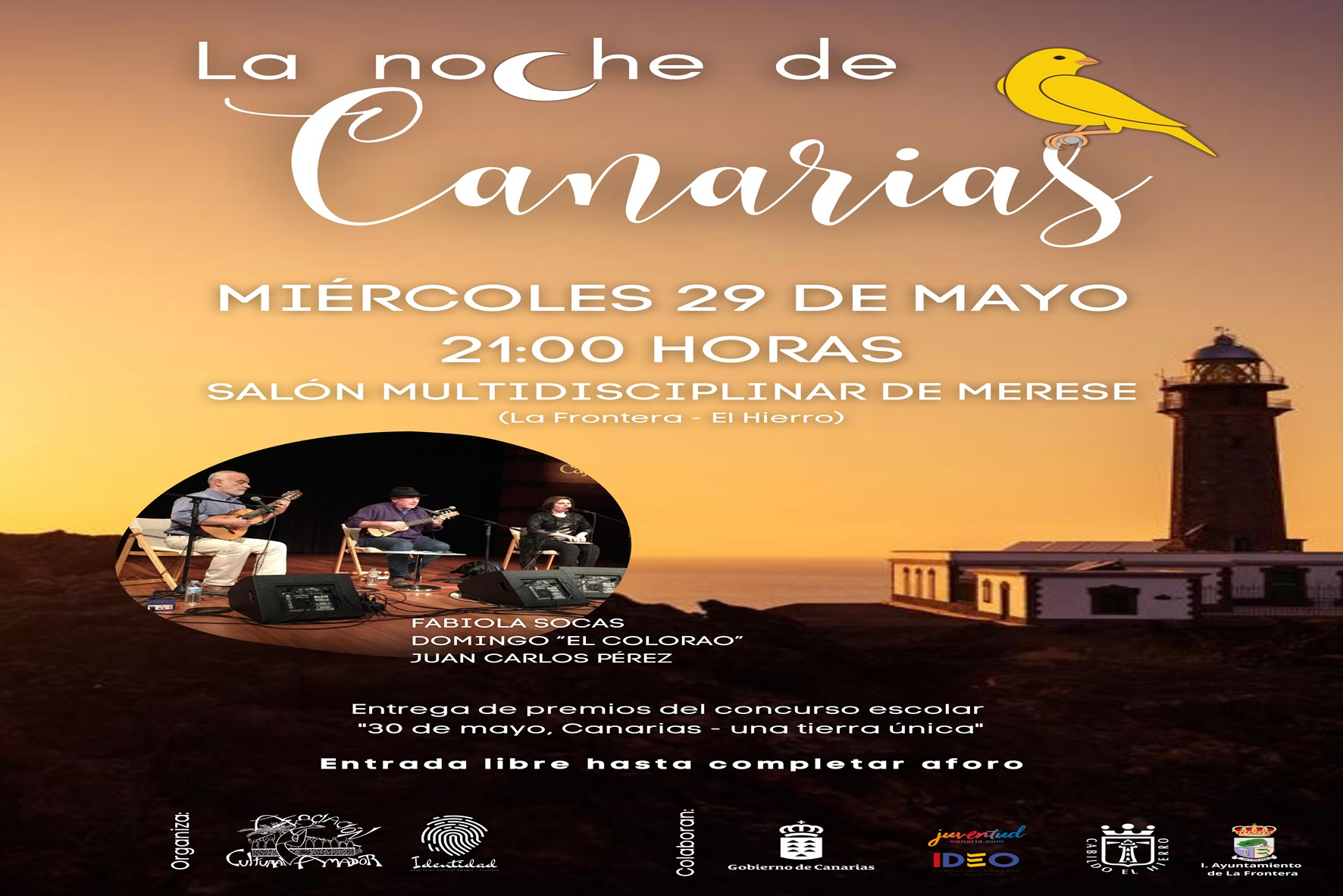 La Asociación Cultural Amador, de La Frontera, celebrará “La noche de Canarias” este miércoles, 29 de mayo, a las 21:00 horas en el salón multidisciplinar de Merese. Un espectáculo que un año más sirve de preámbulo al día de nuestra comunidad, en que se conmemora la celebración de la primera sesión del Parlamento de Canarias. La entrada al evento es libre hasta completar el aforo.