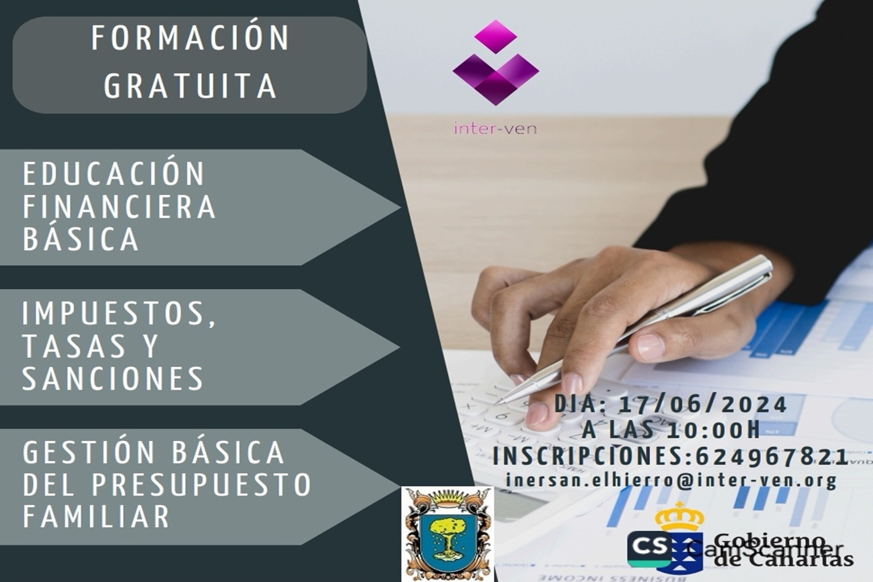Las inscripciones deberán realizarse a través del número de teléfono 624967821 o al correo inersan.elhierro@inter-ven.org.