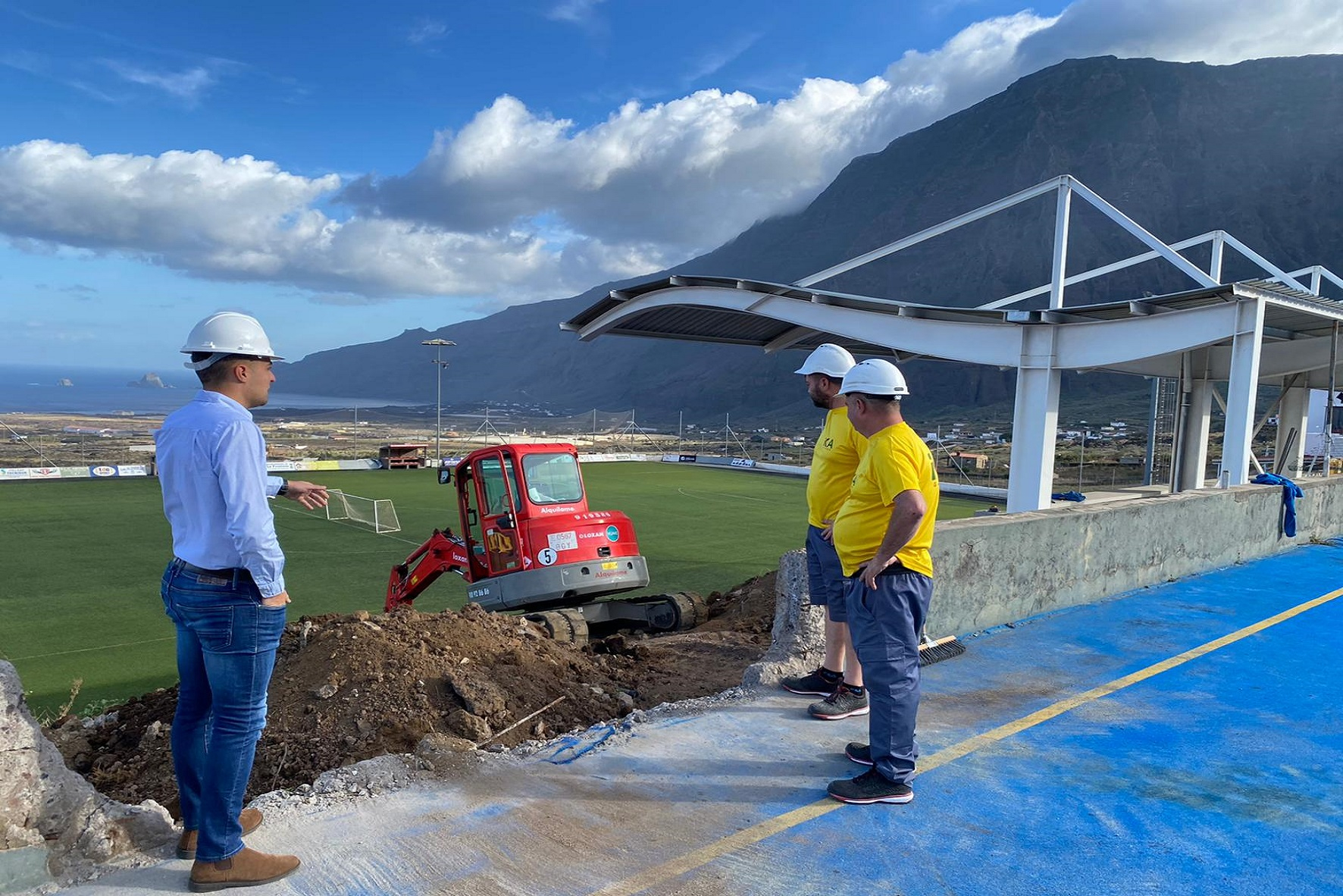 Johan González, Concejal del PP en La Frontera, ha visitado en la mañana de hoy las obras con las que se culminará la grada superior y el techo del campo de fútbol. “Con esta última fase se finaliza un proyecto importante para el municipio. Contaremos con el campo de fútbol con mayor capacidad de aforo de la isla, más de 1.300 personas- Además será el único techado de la isla, con más de la mitad del aforo bajo techo” declara el Concejal popular.