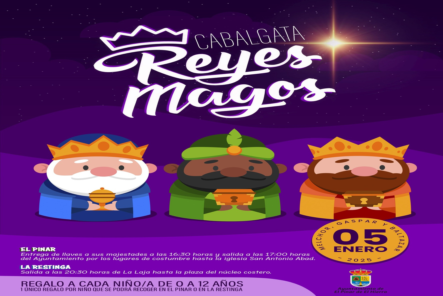 Sus Majestades de Oriente le tienen guardado un regalo educativo a cada niño/a de 0 hasta 12 años, que lo podrán recoger o en la cabalgata de El Pinar o de La Restinga.