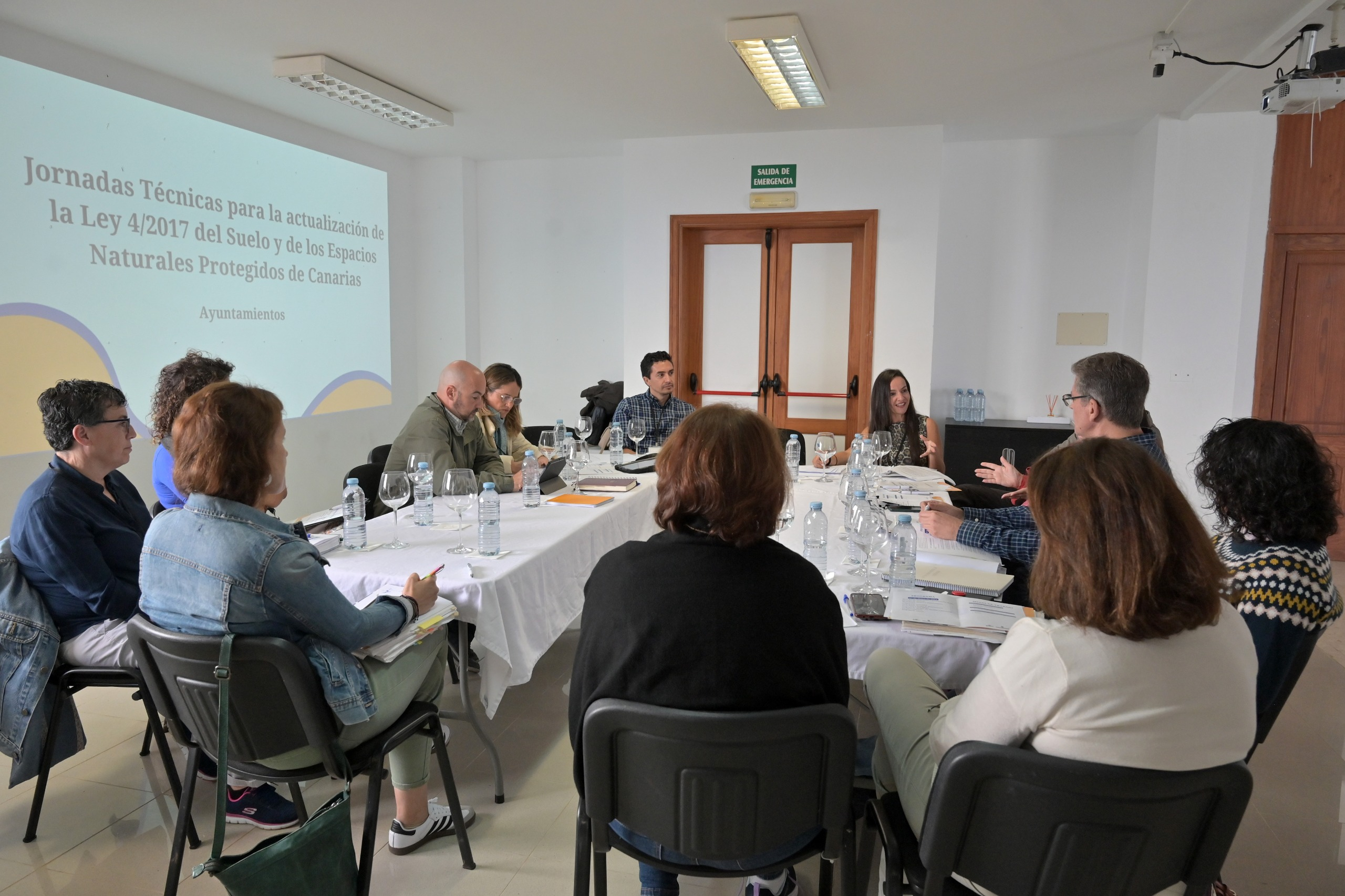 Los técnicos de los tres ayuntamientos herreños, de Gesplan y de la propia Consejería han debatido este martes sobre el Plan Insular de Ordenación de El Hierro, su adaptación a la Ley y la garantía de un correcto tratamiento del suelo rústico; los contenidos y competencias de los planes territoriales y parciales; la normativa sobre los espacios protegidos y otros instrumentos complementarios.