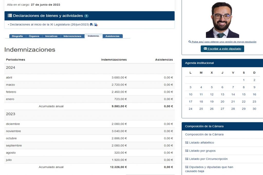 Acosta afirma que “volvería ser Diputado” ,365 días de Parlamento, como más de 61.000 euros (24.000 euros en dietas)