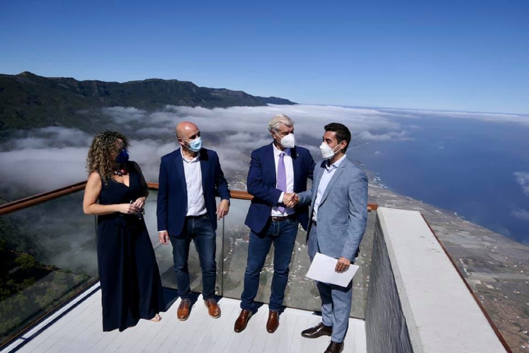 La Consejería de Turismo, Industria y Comercio del Gobierno de Canarias ha hecho entrega hoy al Cabildo de El Hierro para su gestión del Mirador de Jinama tras finalizar las obras de construcción y acondicionamiento que se han llevado a cabo. El acto de recepción ha contado con la presencia del director general de Infraestructura Turística el Gobierno de Canarias, Fernando Miñarro; el presidente del Cabildo de El Hierro, Alpidio Armas; el alcalde de Valverde, Antonio Chinea; y la consejera del Turismo de la institución insular, Lucía Fuentes.
