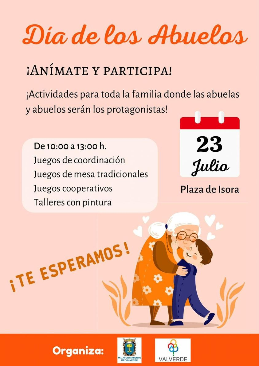Siguiendo con el Proyecto “12 meses, 12 causas”, con el propósito de hacer más visible las situaciones y el día a día de distintos colectivos, buscando una mejoría en sus vidas a través de concienciar al resto de la sociedad, la Concejalía del Área de Servicios Sociales del M.I. Ayuntamiento de Valverde llevará a cabo una actividad de concienciación y sensibilización que se celebrará el sábado día 23 de julio de 10:00 a 13:00 horas en la Plaza de Isora, donde nuestros mayores serán los protagonistas, desarrollando actividades lúdicas para que los mas pequeños disfruten de una mañana divertida realizando juegos de mesa tradicionales, juegos de coordinación, juegos cooperativos y talleres con pintura