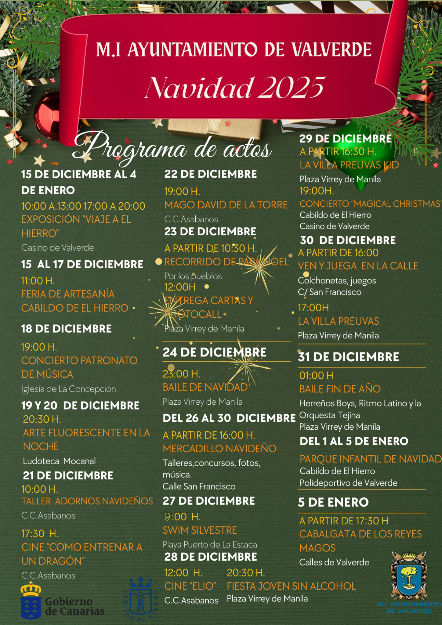 El M.I. Ayuntamiento de Valverde ha dado a conocer el programa de actos de la Navidad 2025, una propuesta pensada para disfrutar en familia y dinamizar la vida cultural y social del municipio durante estas fechas tan especiales.