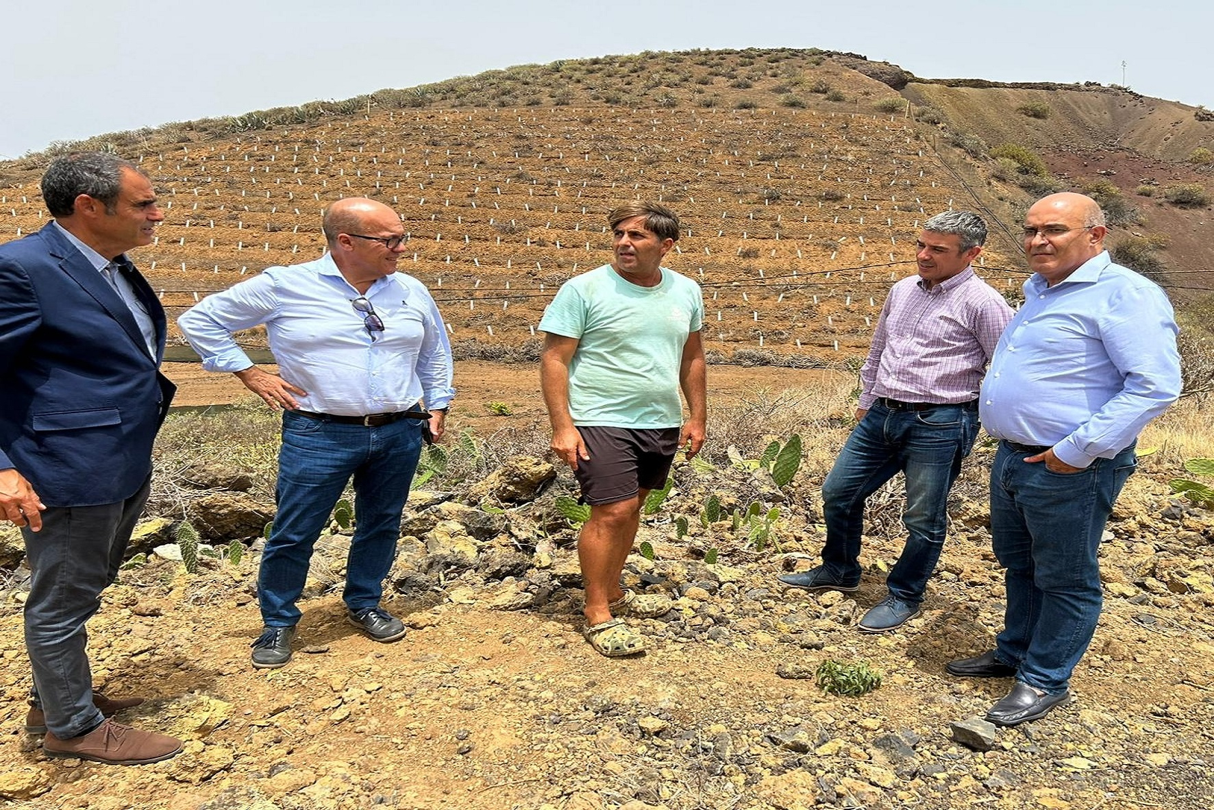 Tras la reunión mantenida en el Ayuntamiento, han llevado a cabo una visita a una Finca Ecológica situada en el Pozo de las Calcosas, con el fin de conocer de primera mano la realidad del sector en el municipio, y escuchar in situ las preocupaciones, demandas y sugerencias de los agricultores.